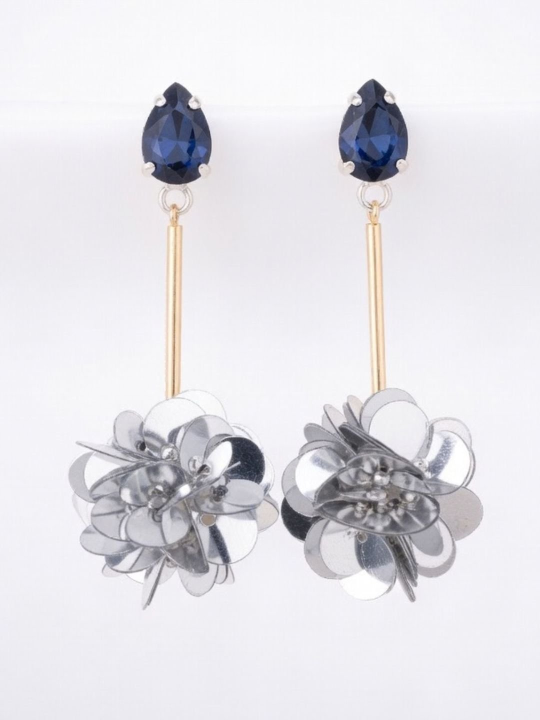 Blue Earrings for Women – Elegant Long Drop Silver Floral Statement Jewellery