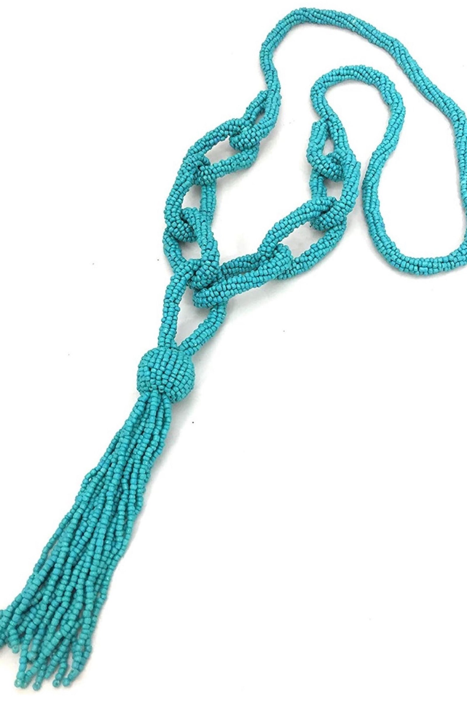 This stunning necklace is a celebration of meticulous artisanal skill. It features dozens of delicate strands, each hand-strung with premium seed beads that emulate the organic beauty of genuine turquoise. The resulting “waterfall” drape offers a rich, layered texture that provides immediate visual depth to any outfit. As a cornerstone of boho jewellery, it embodies a free-spirited aesthetic while maintaining a polished finish that aligns with high-end fashion trends.
